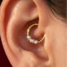 This sleek tri-stone hinged clicker is a must have for both new and piercing enthusiasts, a classis Titanium ring, studded with three 3mm dazzling Cubic Zirconia stones, perfect for Septum or Daith piercings with their front facing gems. This tri-jewelled ring is available in 8mm for a more snug, sleek fit and 10mm for a more bolder look. Both sizes come in classic clear stone colour and Aurora Borealis colour to suit your preference and look. Premium craftsmanship and exceptional beauty put into the making of this clicker ring.