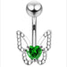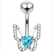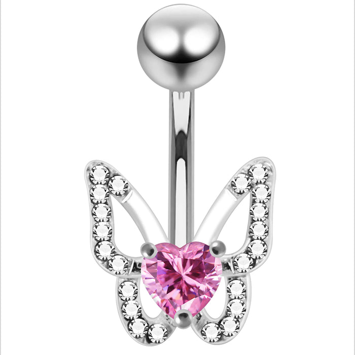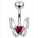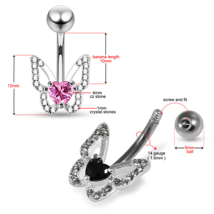 Delicately crafted with sparkling stones outlining the wings, this belly bar showcases a graceful butterfly design. A vibrant heart-shaped gem at the centre adds a bold focal point, perfectly balancing elegance and playfulness. Ideal for those wanting to bring a whimsical touch to their navel piercing jewellery collection.