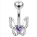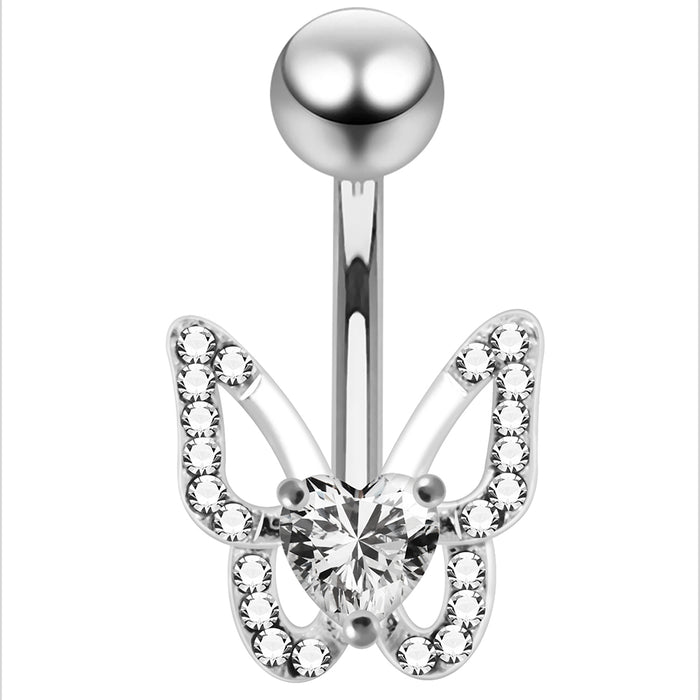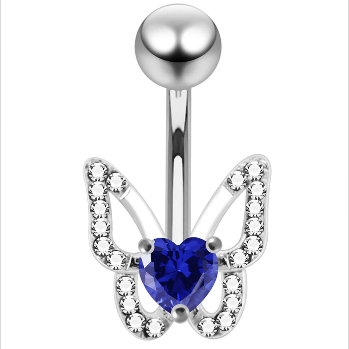 925 Sterling Silver Heart CZ Jewelled Butterfly Non Dangle Belly Button Ring