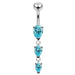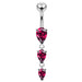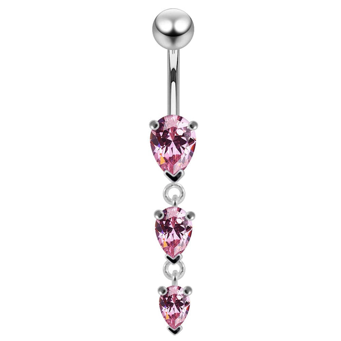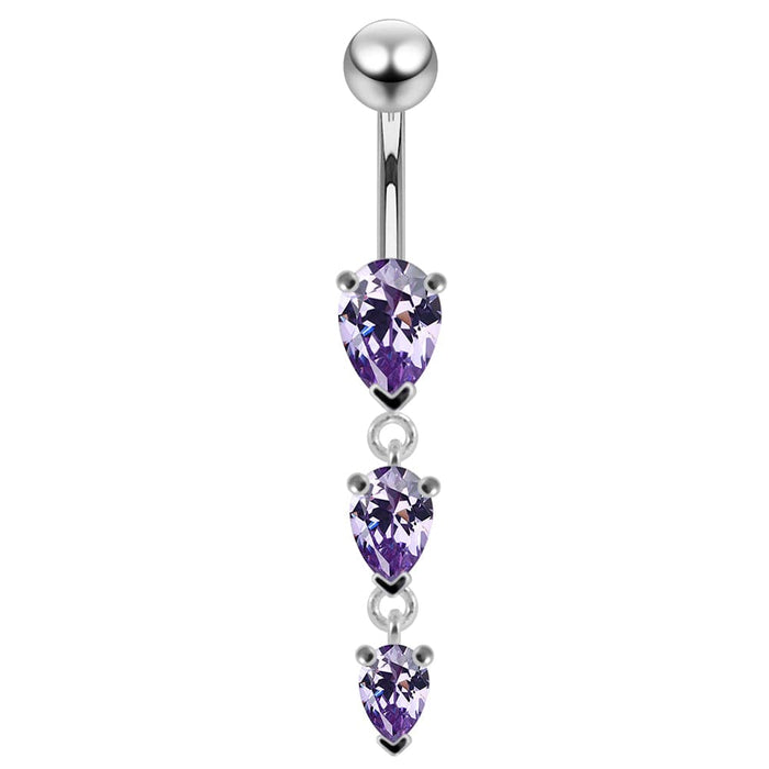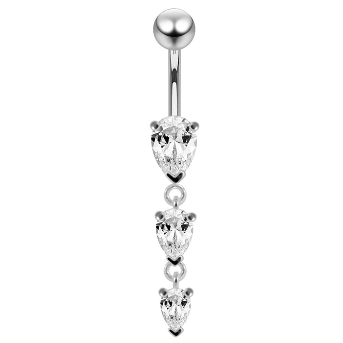 Bring graceful sparkle to your style with this elegant belly bar, showcasing three cascading teardrop-shaped cubic zirconia stones. The polished design reflects light beautifully, making it perfect for adding refined shine to both everyday looks and special occasions.