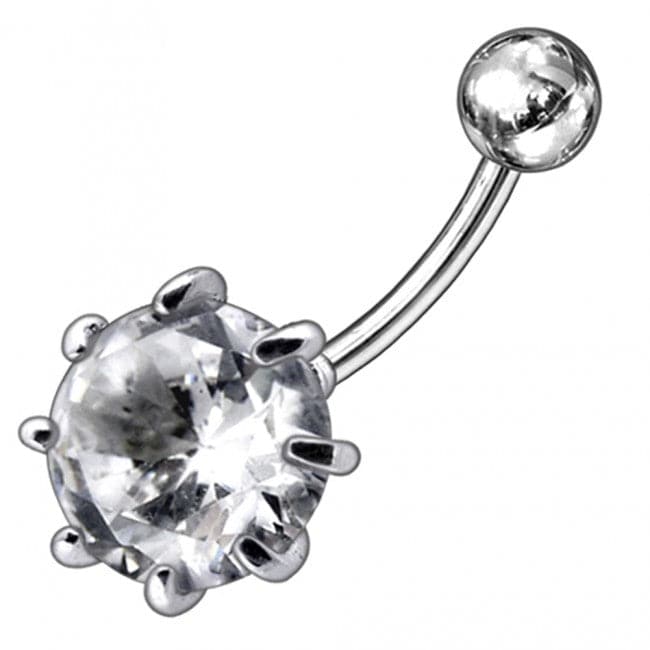 Add a touch of brilliance with this stylish belly button ring, featuring a large, sparkling stone. Its secure prong setting ensures durability while maintaining a sleek, refined look. Perfect for anyone seeking a simple yet eye-catching addition to their body jewellery collection.