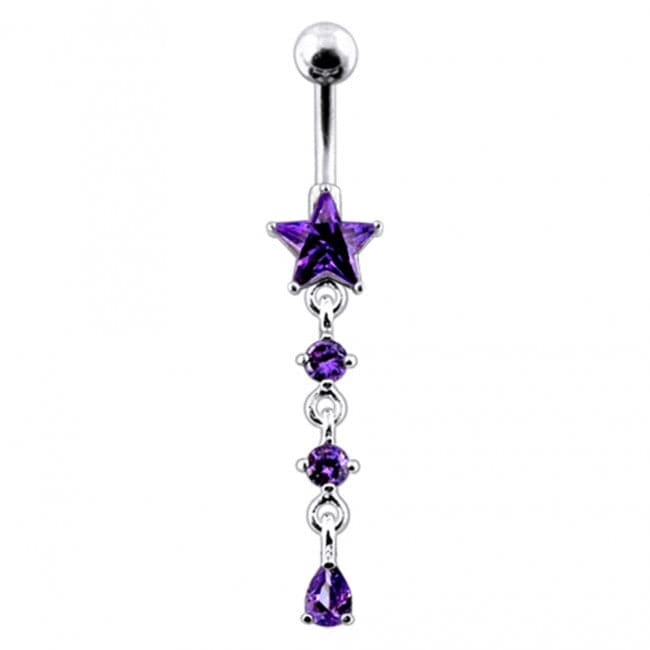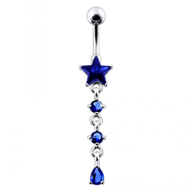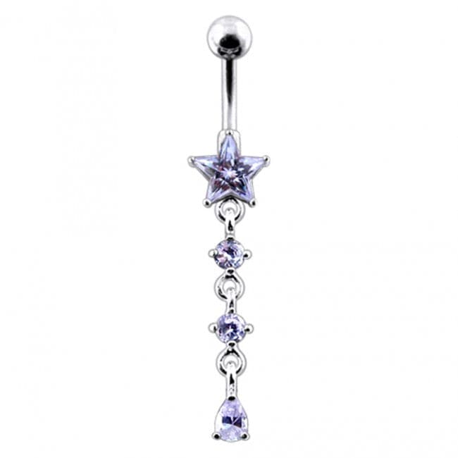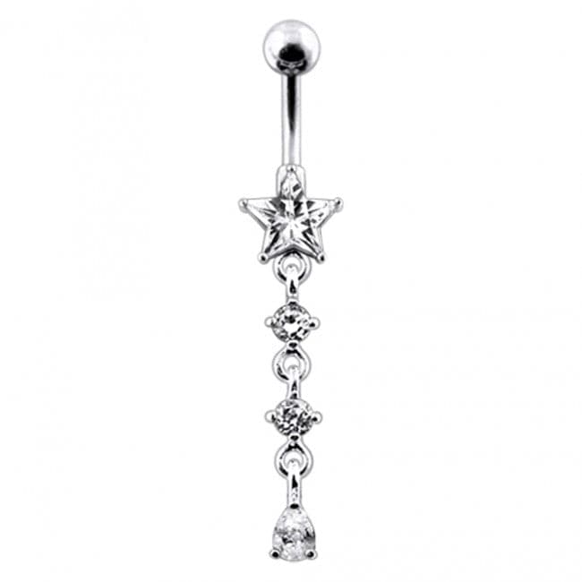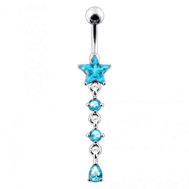 Elevate your jewellery collection with this stunning belly button ring, featuring a delicate star and drop belly bar design. Shimmering stones add a dynamic sparkle that moves beautifully with you, making this navel piercing jewellery perfect for drawing attention in any setting.