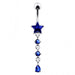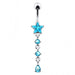 925 Sterling Silver Star and Gemstone Dangling Belly Ring