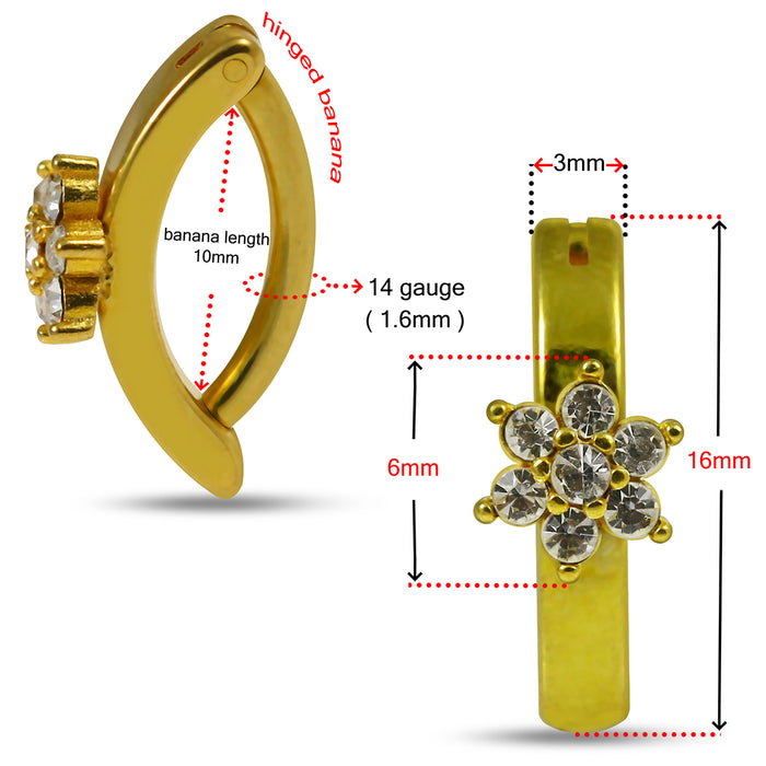 316L Surgical Steel Cubic Zirconia Flower Curved Clicker Belly Ring